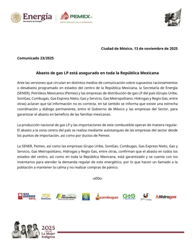 Ante esta situación, las autoridades hacen un llamado a la población a mantener la calma. No se requiere que los ciudadanos realicen compras por pánico, ya que el suministro está garantizado. La SENER, Pemex y las empresas del sector reafirman su compromiso de asegurar el abasto de gas LP para el bienestar de todas las familias mexicanas.