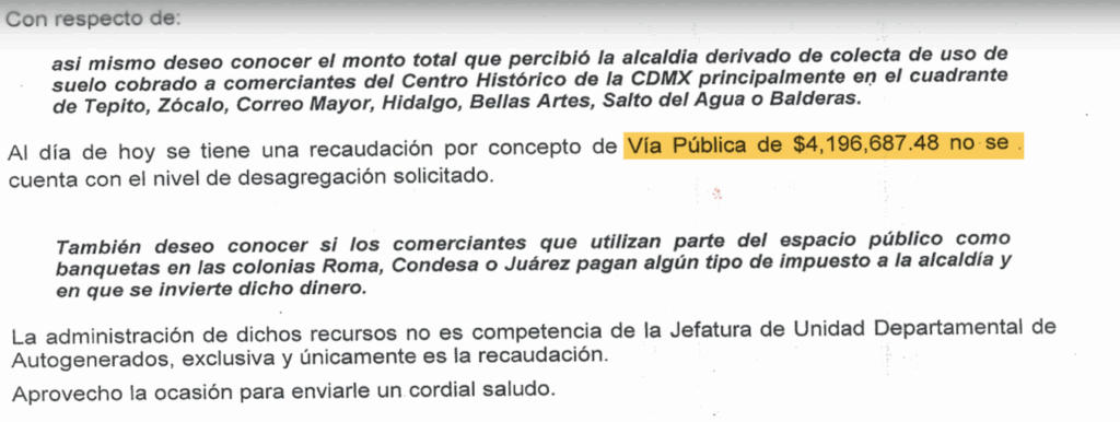 Ante una solicitud de transparencia realizada por Los Reporteros MX, la alcaldía Cuauhtémoc se negó a desglosar en qué han sido utilizados los recursos recaudados por el uso del espacio público.