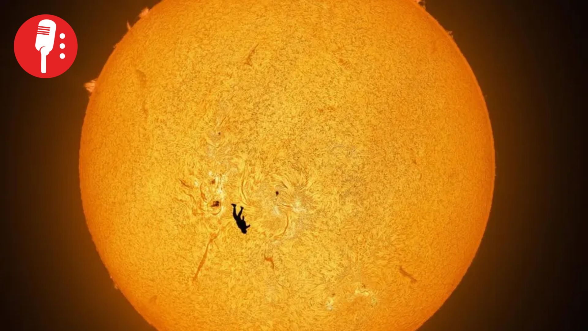 La imagen, titulada “La caída de Ícaro”, muestra al youtuber y paracaidista Gabriel C. Brown descendiendo en caída libre mientras su silueta cruza visualmente una región activa del Sol. McCarthy instaló varios telescopios en el desierto de Arizona y dedicó semanas de cálculos milimétricos para sincronizar la posición del Sol, la trayectoria del salto y el ángulo preciso desde tierra.