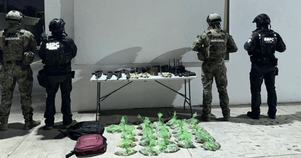 Durante estas acciones, elementos navales localizaron cuatro fusiles de alto poder, 19 cargadores, 14 radios de comunicación y miles de municiones, lo que representa —según la institución— un golpe directo a las estructuras logísticas de la delincuencia organizada, al limitar su capacidad de operación y respuesta armada.
