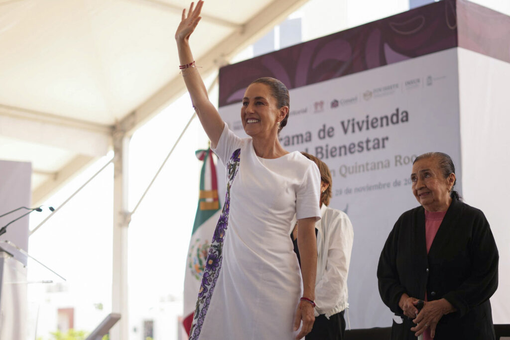 Playa del Carmen, Quintana Roo, México, 29 de noviembre de 2025. La doctora Claudia Sheinbaum Pardo, presidenta Constitucional de los Estados Unidos Mexicanos en Vivienda para el Bienestar. Playa del Carmen, Quintana Roo. La acompañan María Josefina Romero Andrade, beneficiaria del Programa de Liberación de Hipoteca FOVISSSTE; Cecilia Ventura Ventura, beneficiaria Programa Nacional de Vivienda INFONAVIT; Leticia Ramírez Amaya, coordinadora de Asuntos Gubernamentales; Octavio Romero Oropeza, director general del Instituto del Fondo Nacional de la Vivienda para los Trabajadores; Mara Lezama Espinoza, Gobernadora Constitucional del Estado de Quintana Roo; Edna Elena Vega Rangel, secretaria de Desarrollo Agrario, Territorial y Urbano; Jabnely Maldonado Maza, vocal ejecutiva del Fondo de la Vivienda del Instituto de Seguridad y Servicios Sociales de los Trabajadores del Estado (FOVISSSTE).Rodrigo Chávez Contreras, director general de la Comisión Nacional de Vivienda; José Alfonso Iracheta Carroll, director general del Instituto Nacional de Suelo Sustentable (INSUS); Carlos Torres Rosas, Coordinador General de Programas para el Bienestar; Lidia Patricia Dávila Islas, beneficiaria INFONAVIT Solución Integral; Victor Javier Ciau Uitzil, beneficiario de Programa Mejoravit solo para ti; Jesús Alberto Salalzar Estrada, beneficiario de Cancelación de Hipoteca INFONAVIT y Rebeca Martínez Cortés, beneficiaria del Programa de Entrega de Escrituras INSUS. Foto: Presidencia